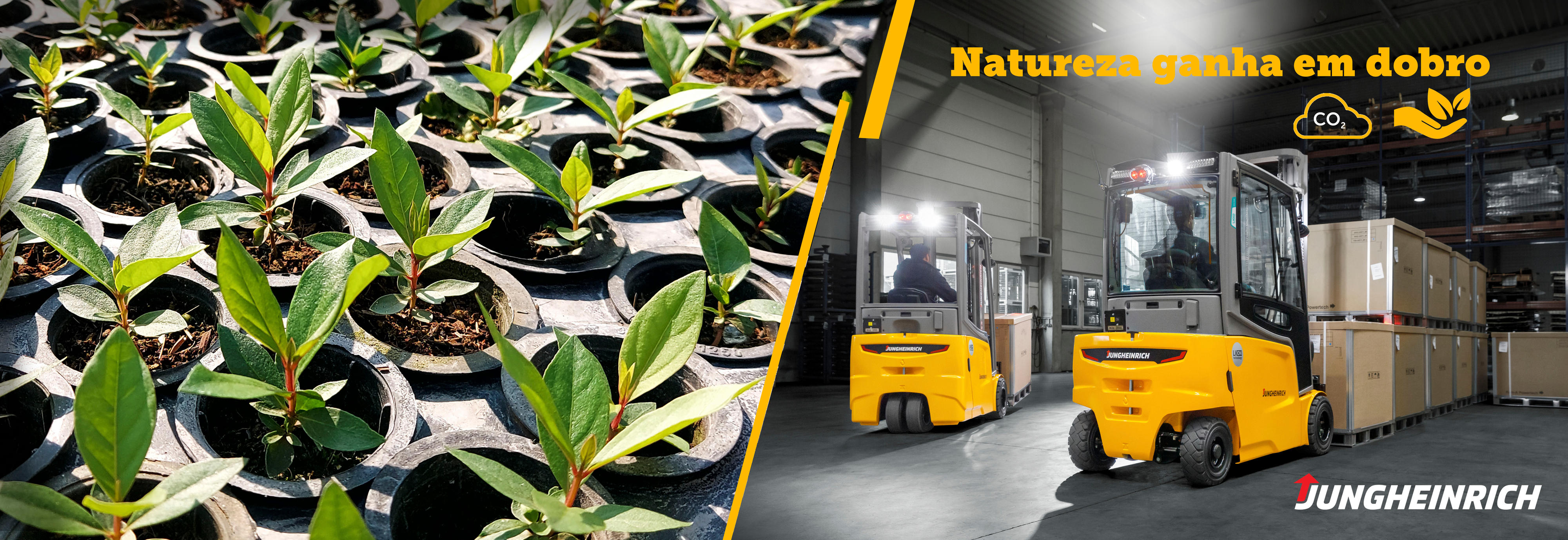 De acordo com a Jungheinrich, para compensar a emissão de CO2 de cada empilhadeira contrabalançada de 2,5 toneladas a GLP (Gás Liquefeito de Petróleo) utilizando 1 cilindro de gás por dia e com uma vida útil estimada em 10 anos, é necessário o plantio total de 1.160 árvores.